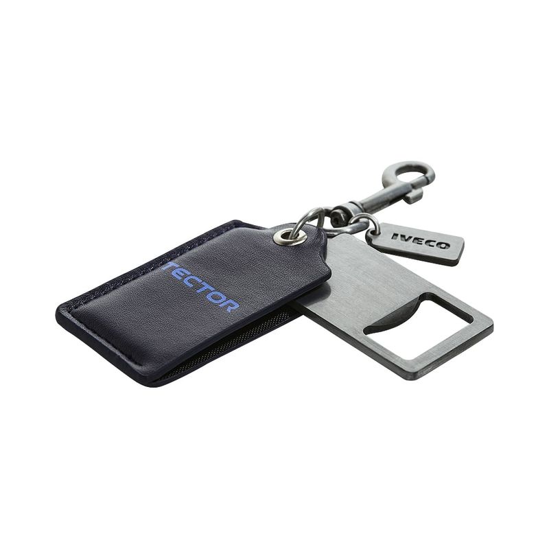 Produzido em couro ecológico e metais em prata. Produto Oficial IVECO Fan Shop